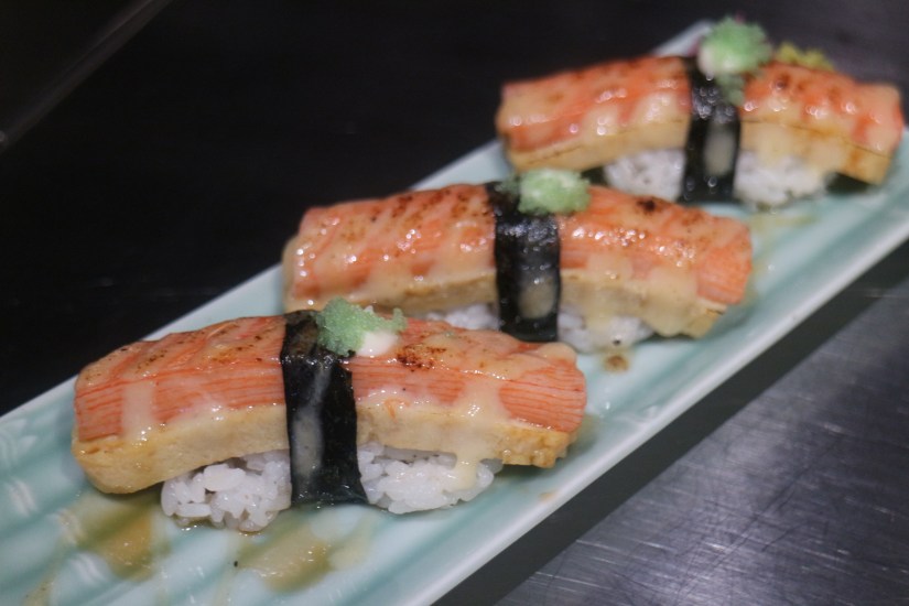 Salmon Aburi Sushi – flame torched salmon sushi but still melt-in-your mouth good!