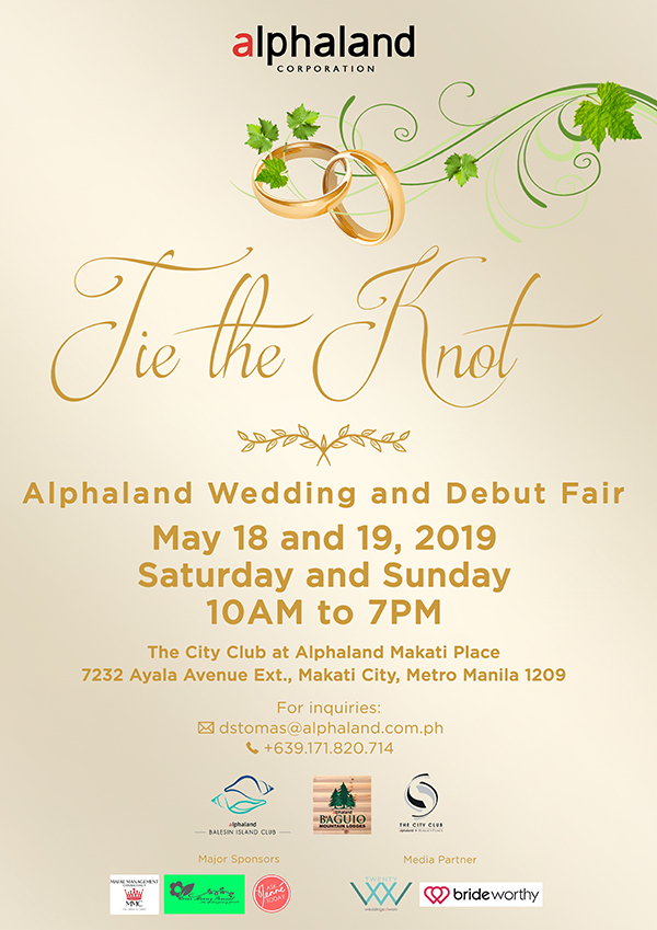 Pre-register HERE to attend Tie the Knot: Alphaland Wedding and Debut Fair 2019 for FREE.