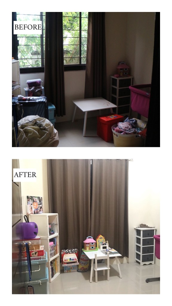 Another concern for me are the piles of boxes and clutter in the living room that I can’t seem to get rid of. Because all the higher cabinets have been cleaned, most of these are now stored neatly in our bedroom cabinets. I finally said goodbye to all the kalats in our living room! Hooray for a clean space that’s ready to be decorated!